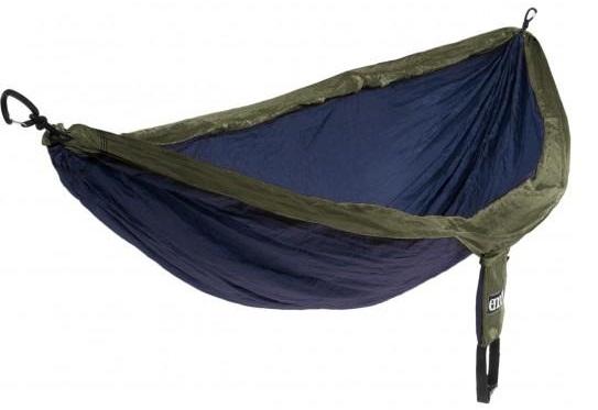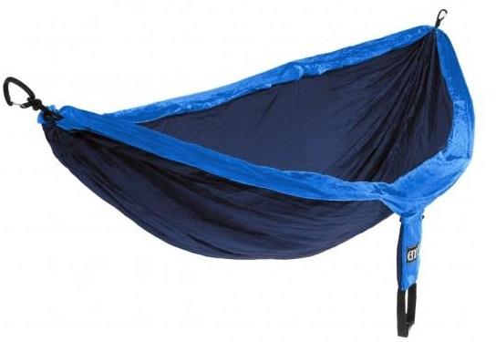 Hamaca para dos personas de Nylon Taffeta de alta resistencia 70D. Capacidad: hasta 181 kilos. Con 2 mosquetones de aluminio 7075. Tela respirable, de secado rapido. Cortura triple de alta resistencia . Dimensiones 2,8 mt x 1,8 mt. Pesa 538 grs.