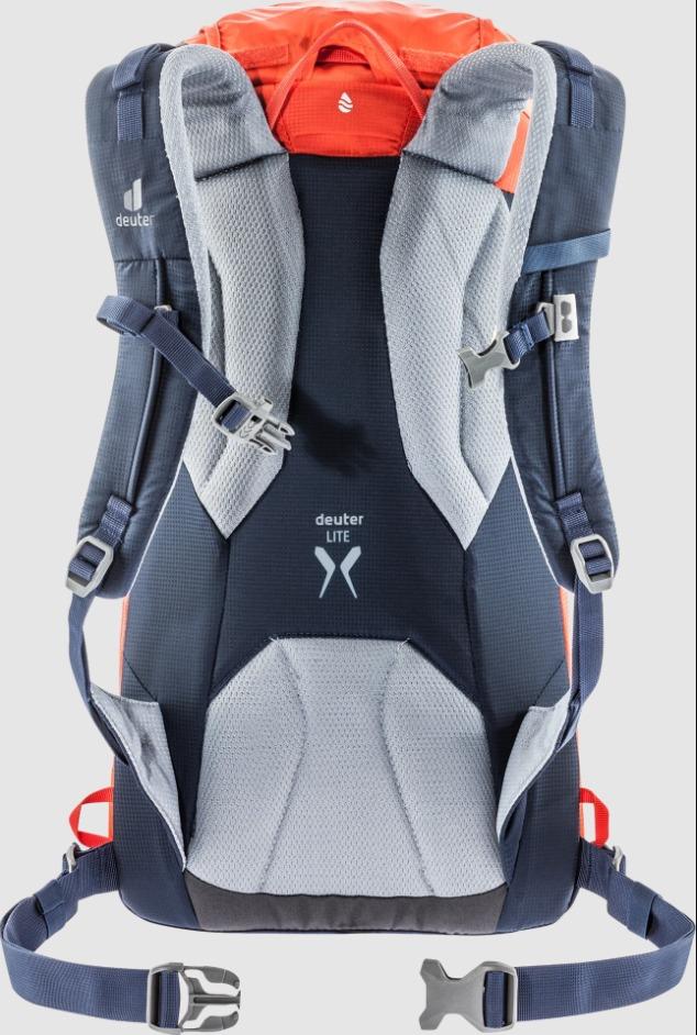Reducido a lo esencial: aún puede transportar cargas ligeras a medianas cómodamente con el sistema de espalda de nuestras mochilas livianas. El marco en U flexible y tensado de Delrin® proporciona estabilidad y una distribución cómoda de la carga con un peso mínimo.